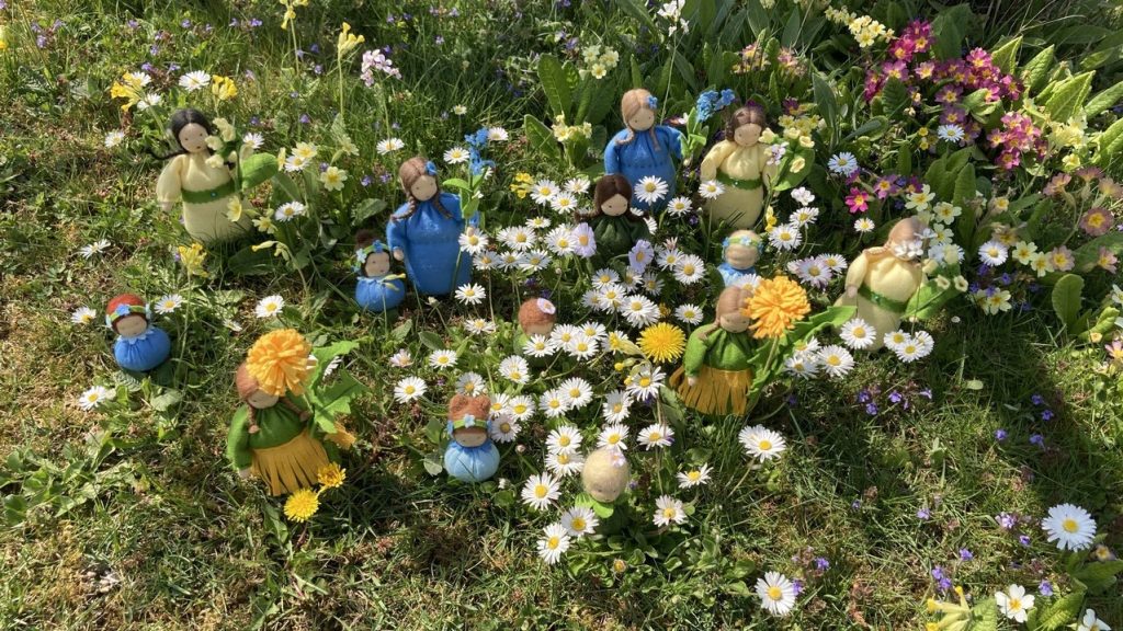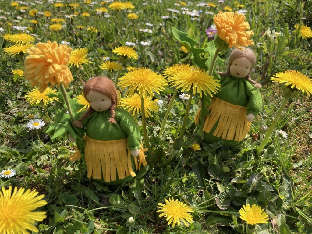 Diese Löwenzahnmädchen sind in liebevoller Handarbeit von mir aus Filz genäht und mit reiner süddeutscher Merinowolle ausgestopft. Sie sind ca. 12 cm groß, mit Blume ca. 16 cm.