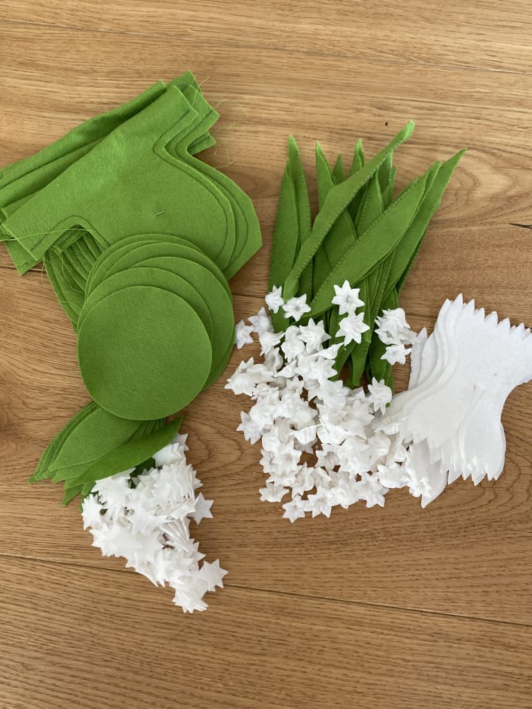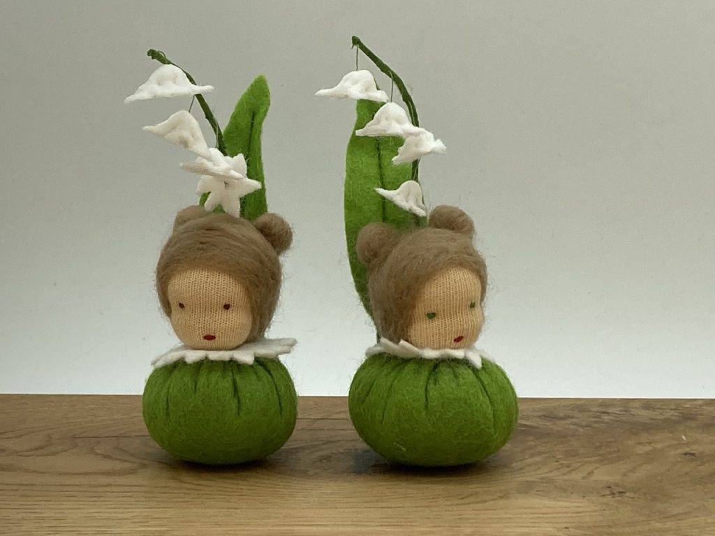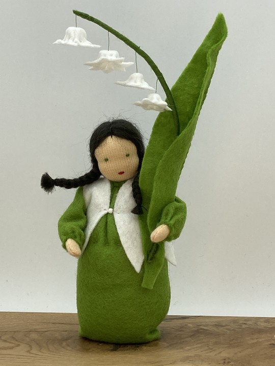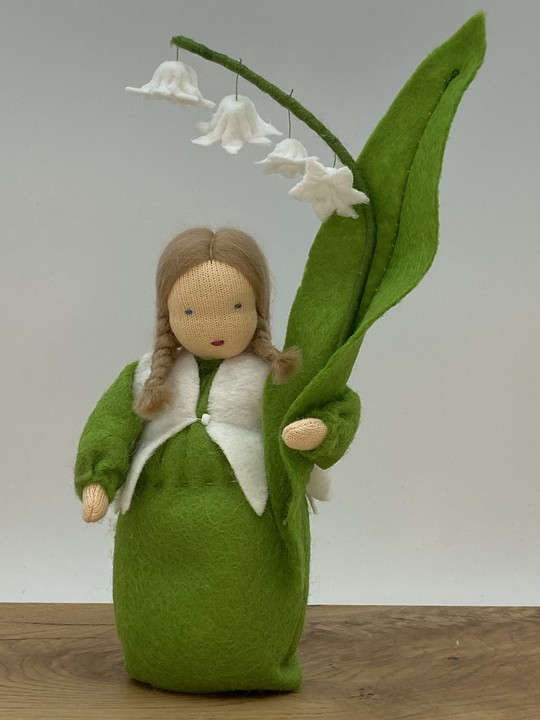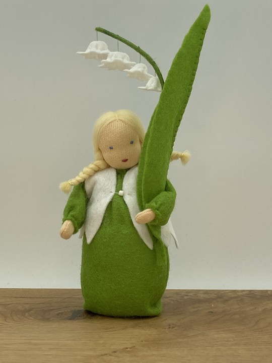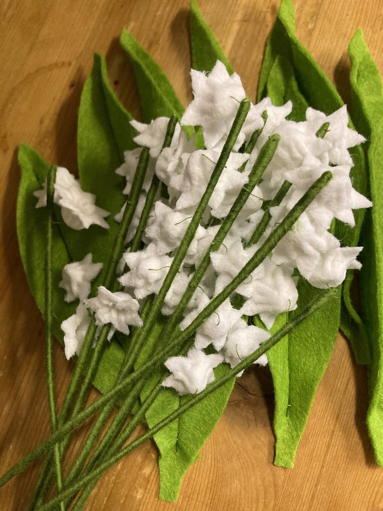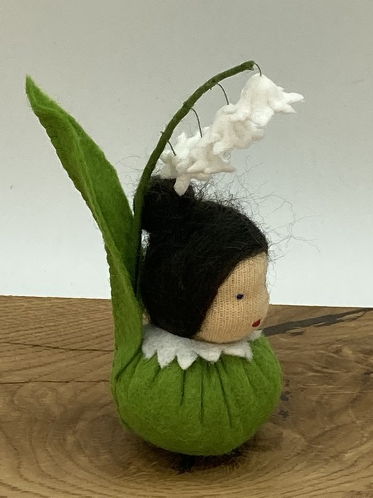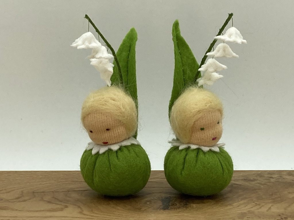 Meine Maiglöckchen sind in liebevoller Handarbeit auf Filz genäht und mit reiner , süddeutscher Merinowolle ausgestopft. Die großen sind etwa 12 cm mit Blume etwa 16 cm groß.