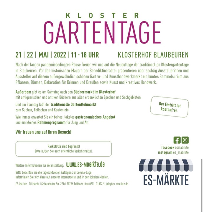 Ich freue mich riesig, dieses Jahr an den Gartentagen im Kloster Blaubeuren teil nehmen zu dürfen. Es ist mein erster Kunsthandwerker Markt und ich bin gespannt, aufgeregt und freue mich sehr auf die Tage in dem schönen Klostergarten.