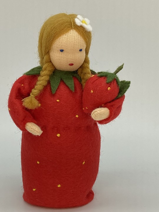 Ich habe heute die ersten Erdbeeren für den Jahreszeitentisch für euch geerntet Die großen Erdbeeren sind ca. 12 cm groß und halten eine kleine Erdbeere im Arm. Die kleinen Erdbeeren sind ca. 6 cm und die kleinen Erdbeerchen ca. 3 cm groß.