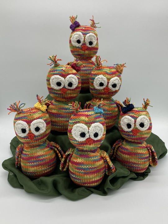 Sie sind endlich fertig, die Eulen. Das stricken der Flügel, Augen, Füße, Schnabel und Schleife hat doch nochmal deutlich länger gedauert als ich gedacht habe, aber jetzt sind die ersten Eulen Fertig.