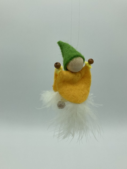 Kaum waren Die Taschen fertig, ging es weiter mit neuen fliegenden Wichteln und Wichtelmobile. Die Wichtel sind aus bunten Pfeiffenputzern, Filz, Holzperlen und Federn gefertigt. Manche Wichtel sitzen, andere liegen auf ihren Federn.