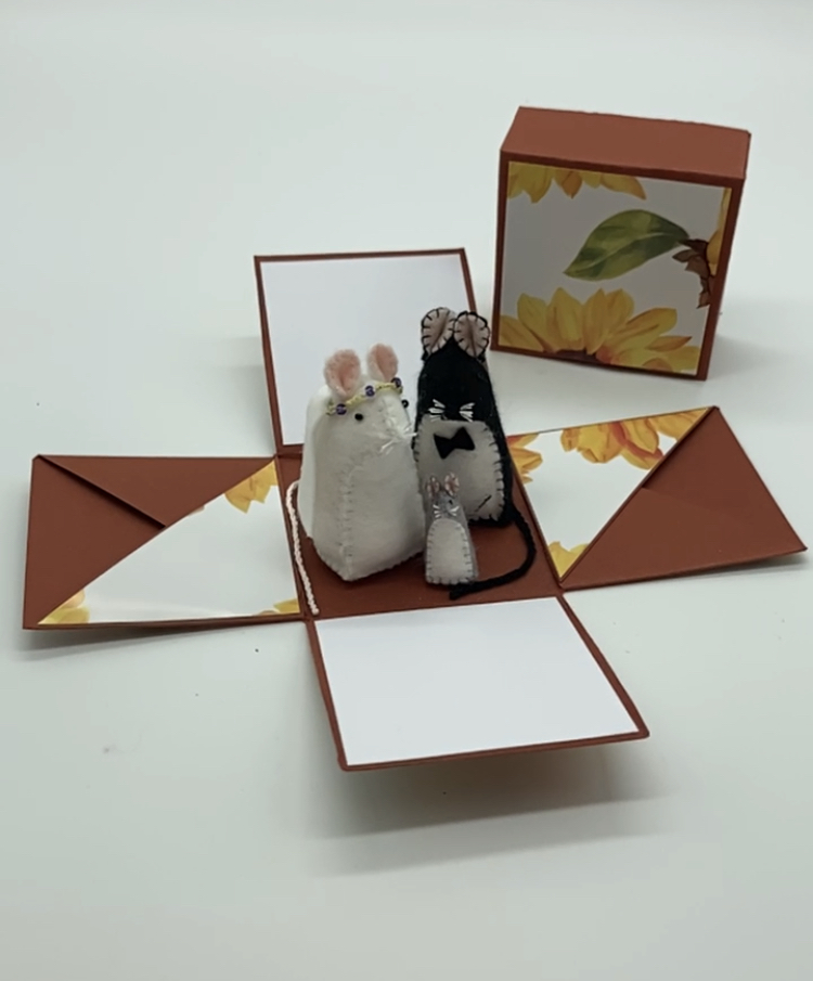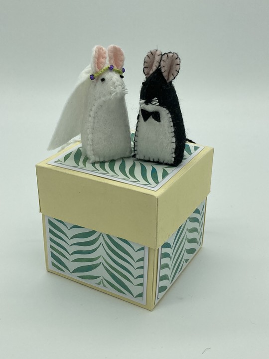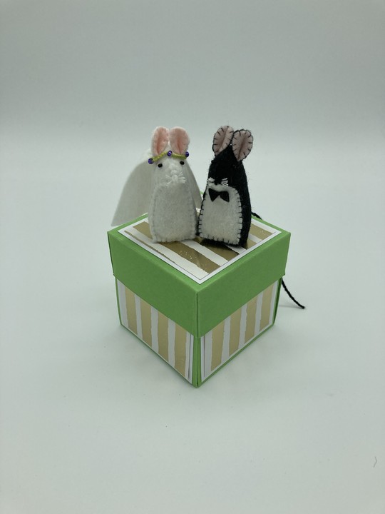 Neue Mäusebrautpaare in der Explosionsbox sind entstanden und ein Brautpaar mit Babymaus haben einem Brautpaar ein Wales ein Lächeln ins Gesicht gezaubert 🙂