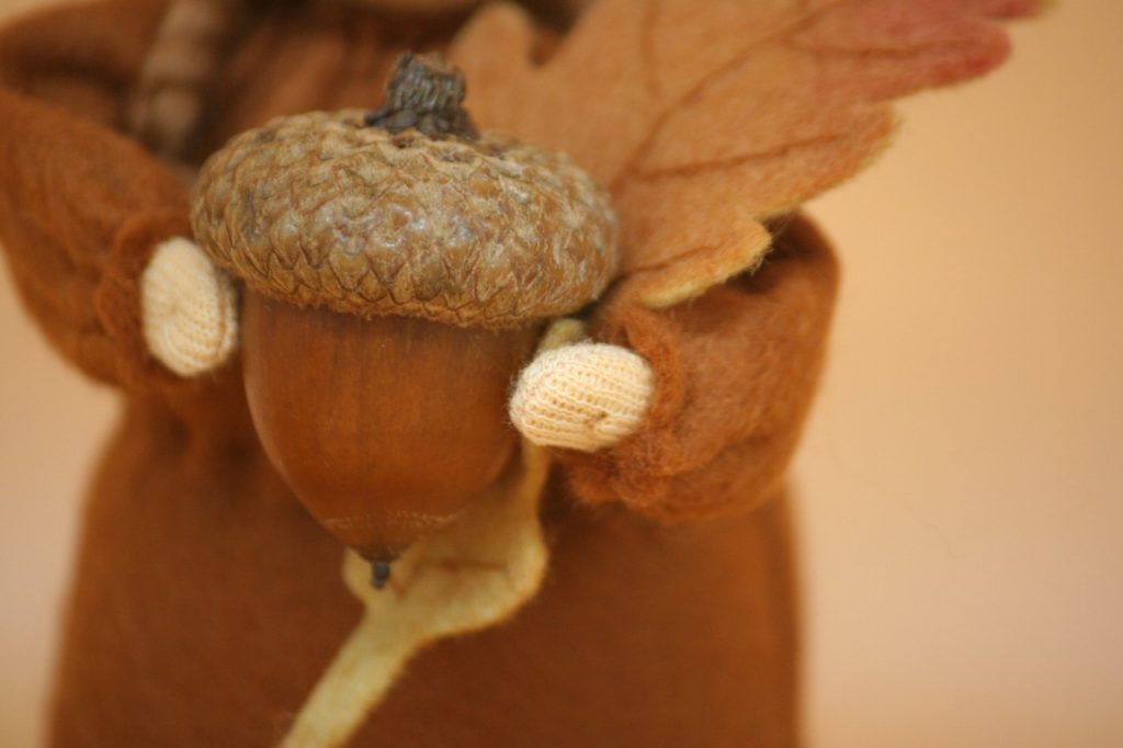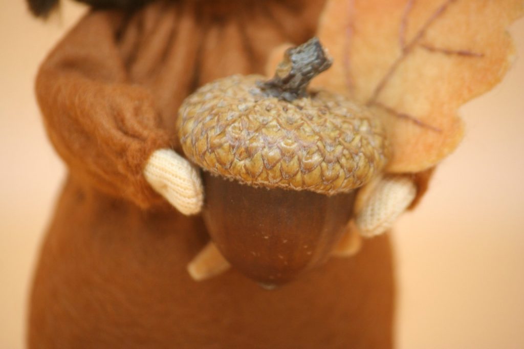 Diese Eichelmädchen sind mit viel Liebe aus Filz genäht und mit reiner Süddeutscher Merinowolle ausgestopft. Sie sind ca. 12 cm groß, haben ein Eichenblatt aus Filz und eine echte Eichel in der Hand.