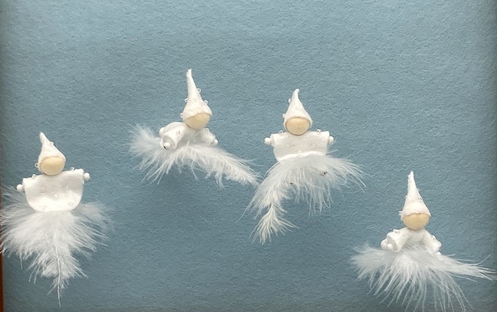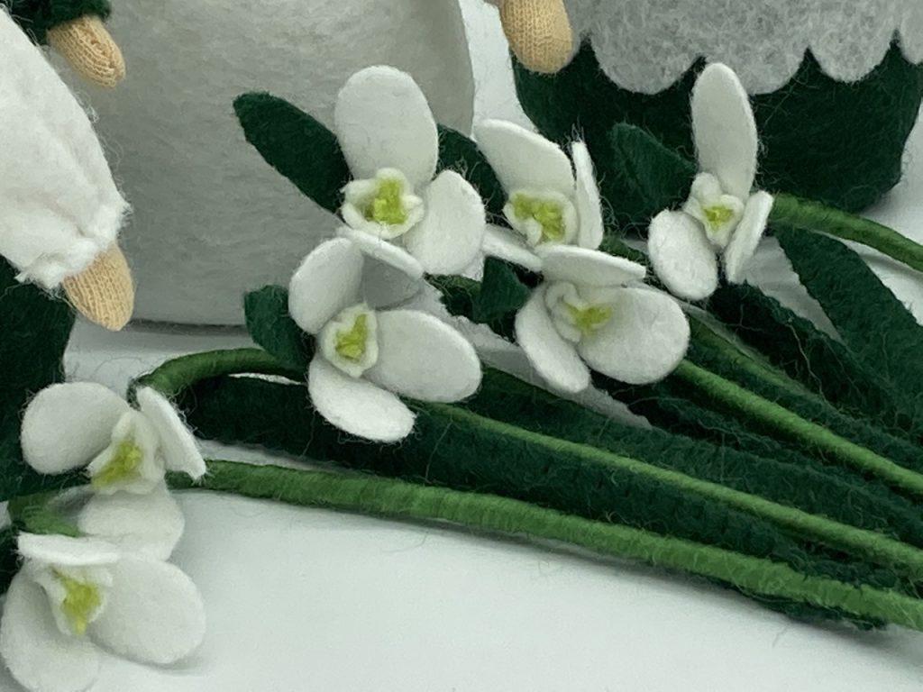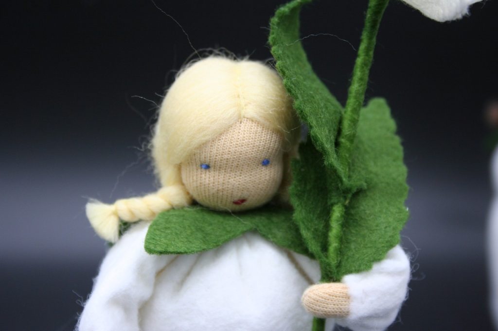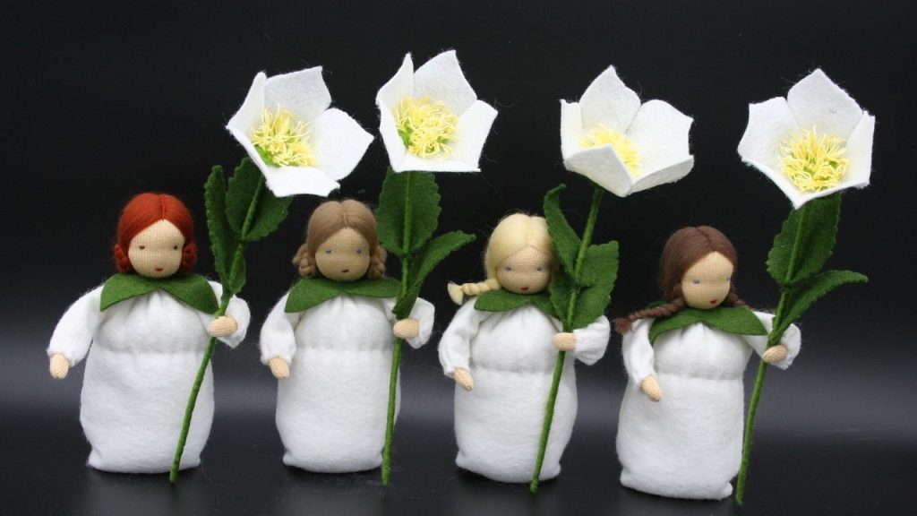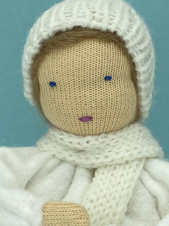 Ich gebe ja die Hoffnung nicht auf, das wir diesen Winter doch noch richtigen Schnee bekommen. Für den Jahreszeitentisch habe ich neue Schneemädchen mit einer Schneeflocke in der Hand. Sie sind mit glitzernden Perlen bestickt und haben einen silbernen Haarkranz mit weißen Perlen im Haar.