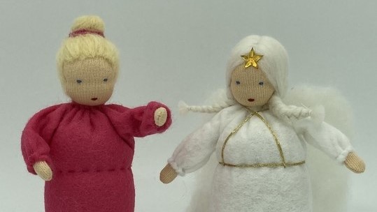 Heute ist eine besondere Bestellung fertig geworden. Der Kundenwunsch war eine Tänzerin in rosa mit hellblonden Haaren und Dutt und ein Schutzengel mit weißen Haaren. Die Kundin ist sehr zufrieden und ich bin Glücklich