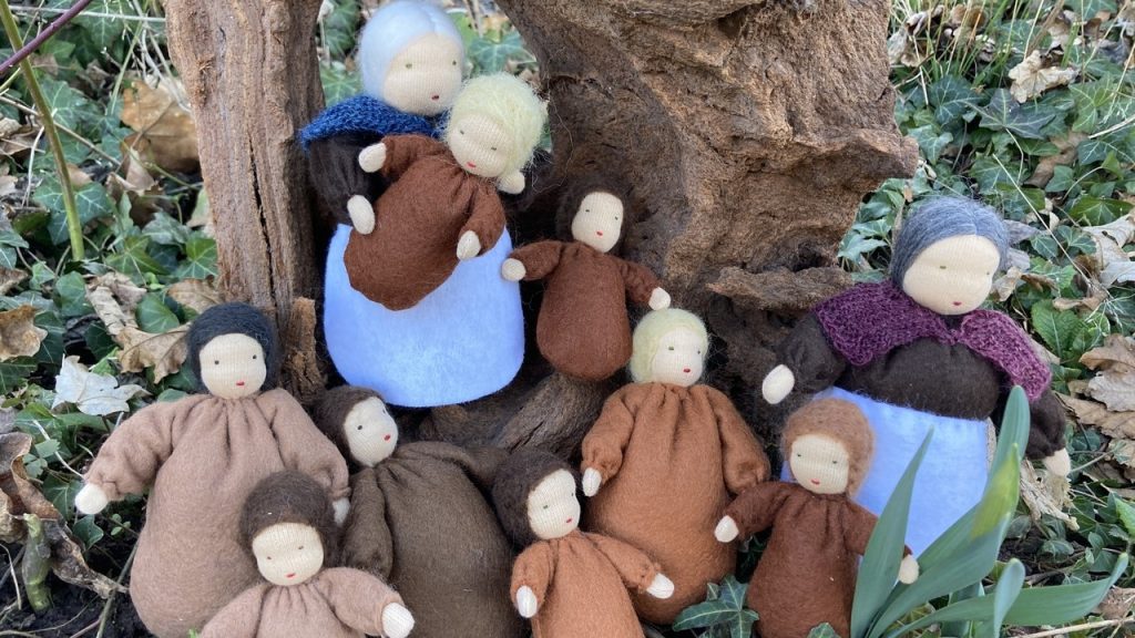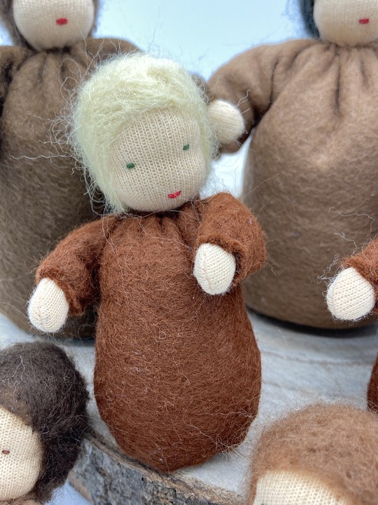 Mutter Erde und die Wurzelkinder habe ich ja schon länger in meinem Sortiment, auf vielfachen Wunsch habe ich nun auch kleinere Wurzelkinder genäht. Mutter Erde ist ca. 16 cm groß, die großen Wurzelkinder sind ca. 11 cm und die kleinen ca. 8 cm groß. Alle Figuren sind aus Filz genäht und mit reiner, süddeutscher Merinowolle ausgestopft.